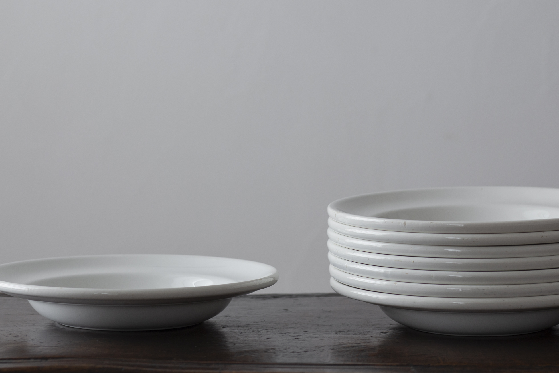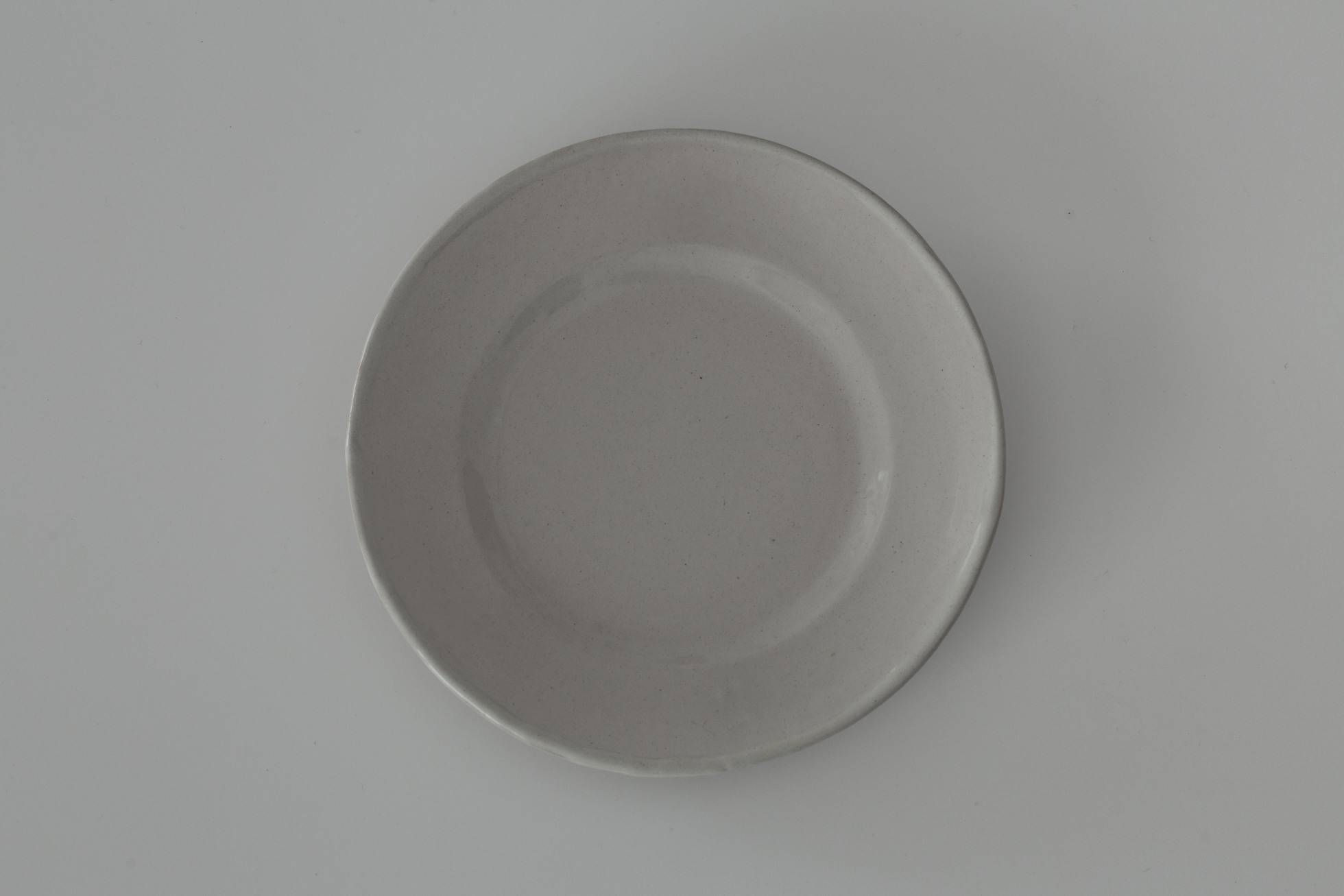 仄かにやわらかな乳白を帯びた色目。日常使いに適した、ディゴワン・サルグミンヌのシンプルなリム皿。