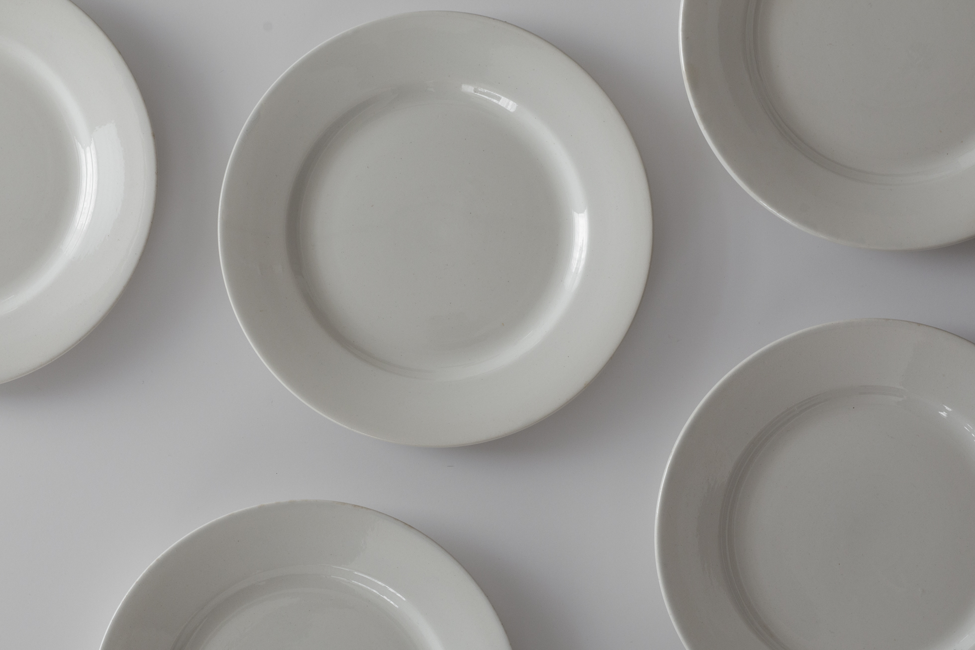 厚めの陶胎に白無地の実用的な佇まい。カフェ、レストランといった場所を想定した、当時の食堂皿です。1920〜50年代頃、ディゴワン・サルグミンヌ。