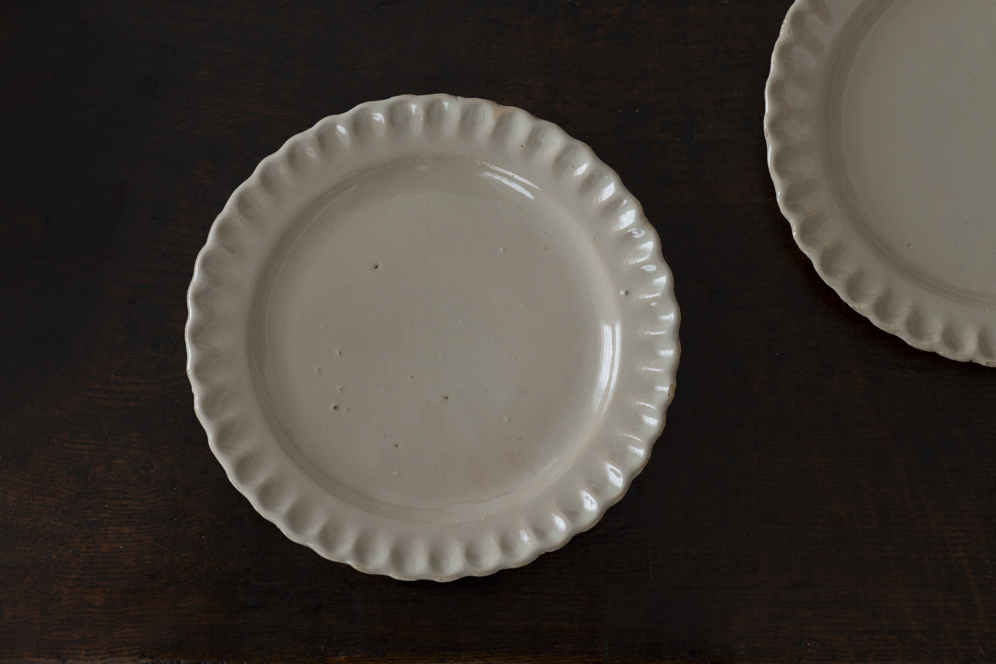 象牙の色調の揺らぎに惹かれました。18世紀、南フランスのファイアンス焼リム皿。