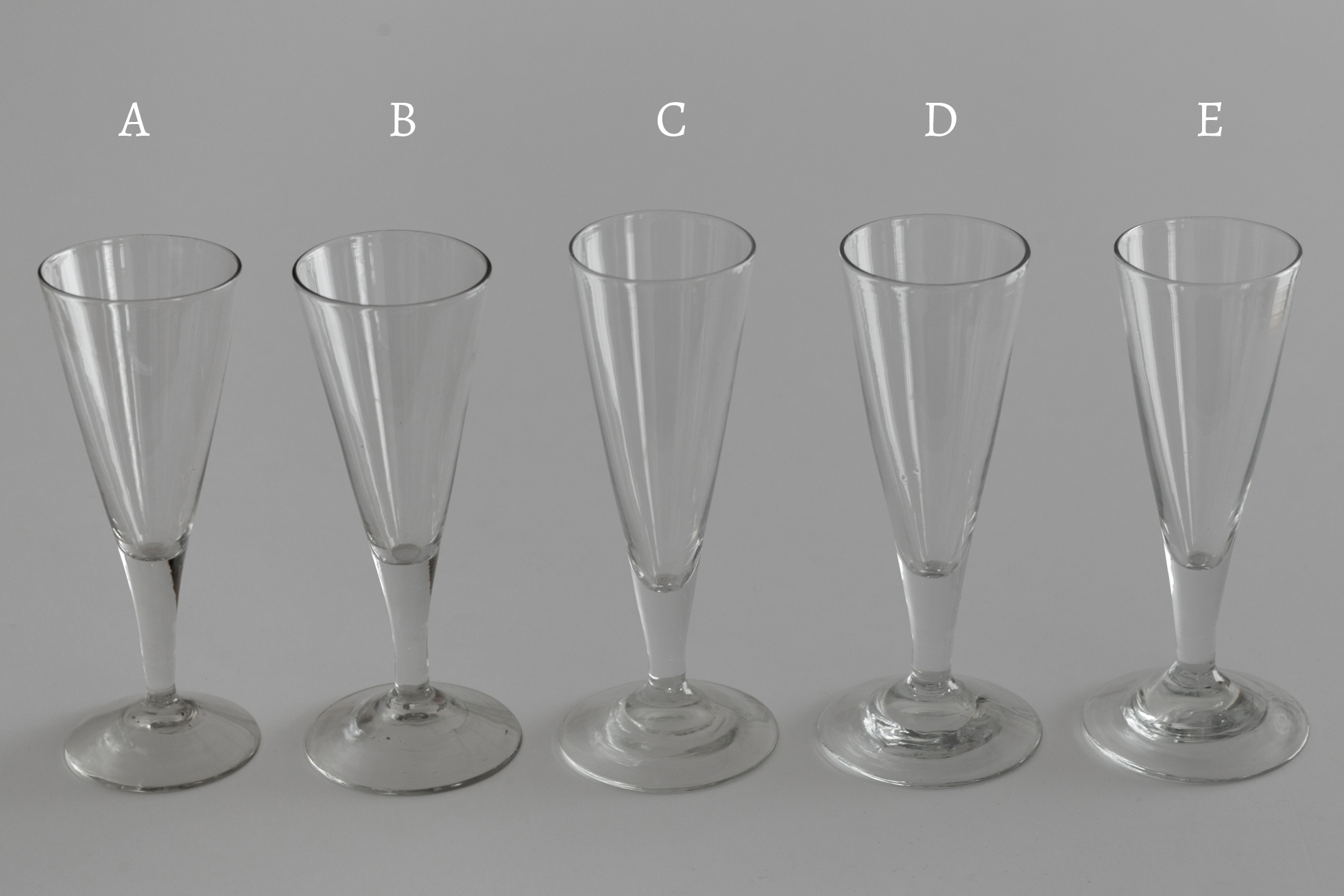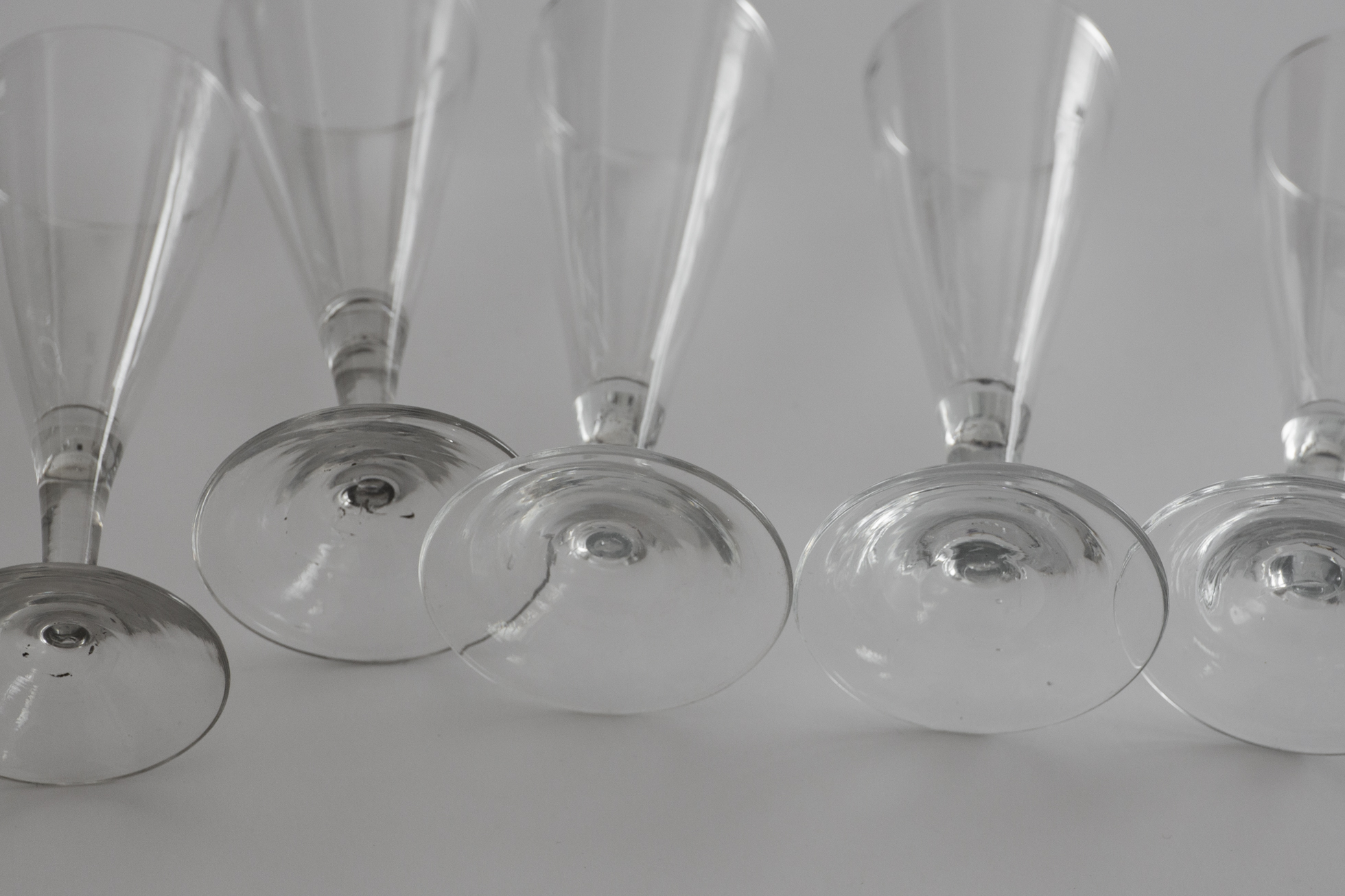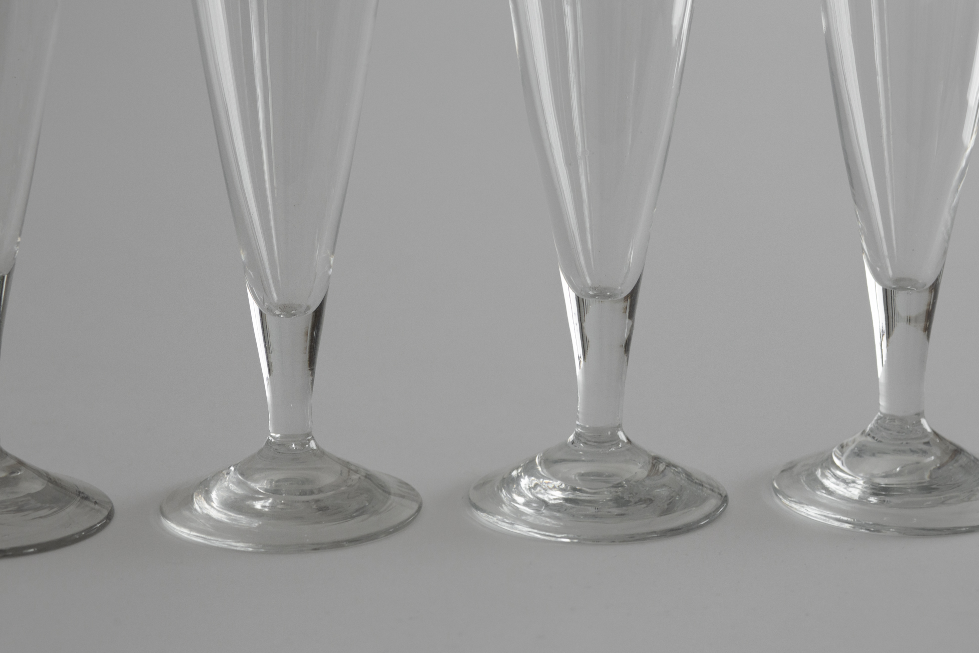 宙吹き成型の仄かなゆらぎと落ち着いた重み、厚みのある器胎。すっとした立ち姿が絵になります。19世紀末、フランス北部、小さな吹きガラスのゴブレ。