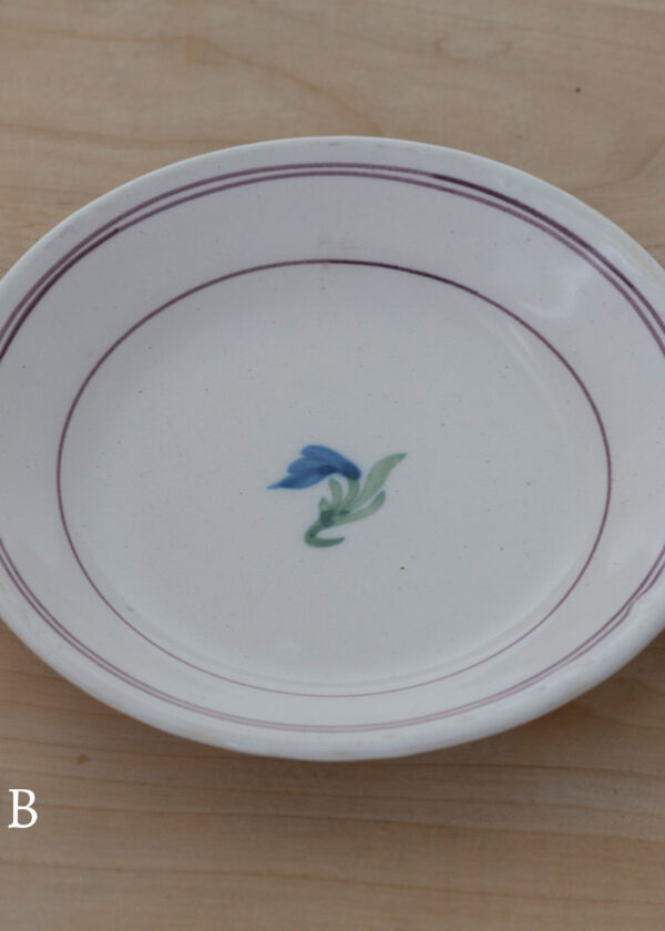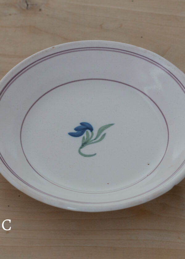 マンガン釉の輪線を基調として中心には藍と緑の花絵。描いているけれど描きすぎない控えめで上品な遊び心が魅力的です。フランスでは僧侶帽のカタチになぞらえてカロットとも呼ばれるリムのない深皿の設計に、寸法は両手にすんっと馴染むちいささ。日常に自然と溶け込んでそうな軽やかな実用性にも心惹かれました。サラダやパスタを盛り付けて。食卓を楽しく彩ってくれそうですね。