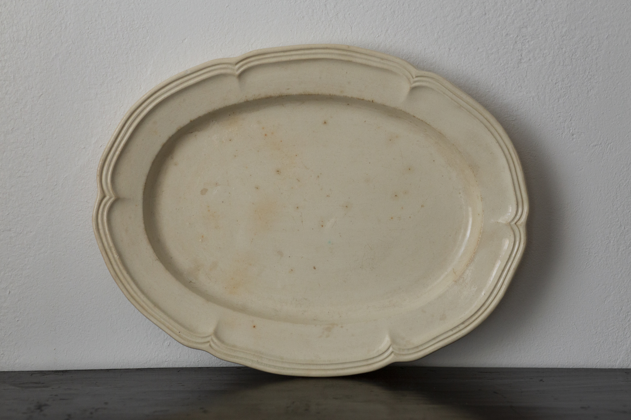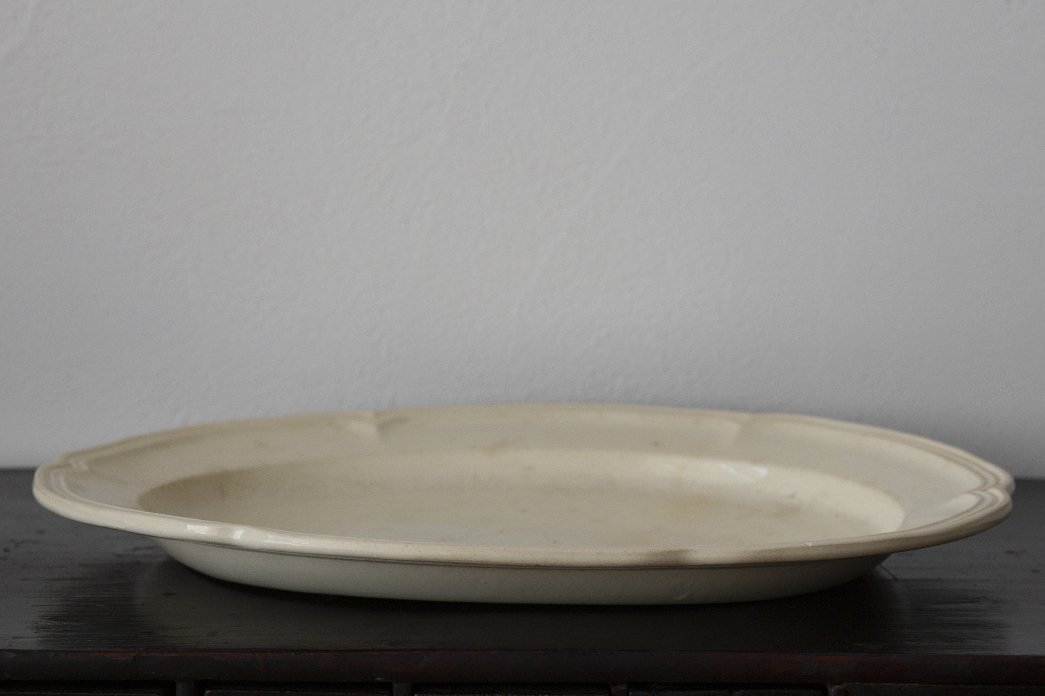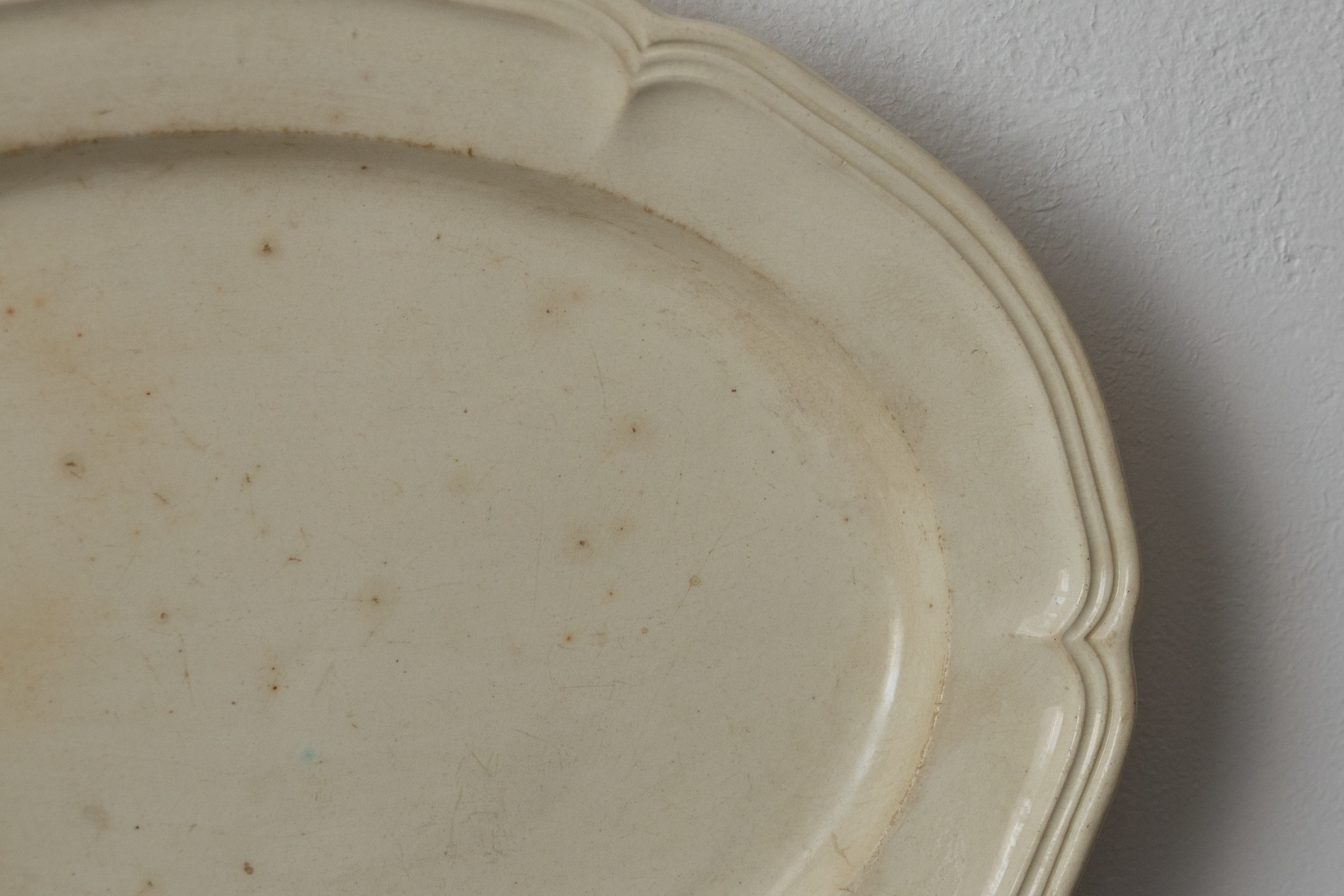 柔らかで肌理の細かい象牙の胎にゆららかなガラス釉。マチエールに惹かれます。フランス、もといロレーヌ的装飾性は華美には寄らず、生活のなかで使い込まれた時間の生んだ古色のニュアンスも美しいです。素朴さを湛えた穏当なノーブルから、時代の凪を感じていただけるでしょうか。