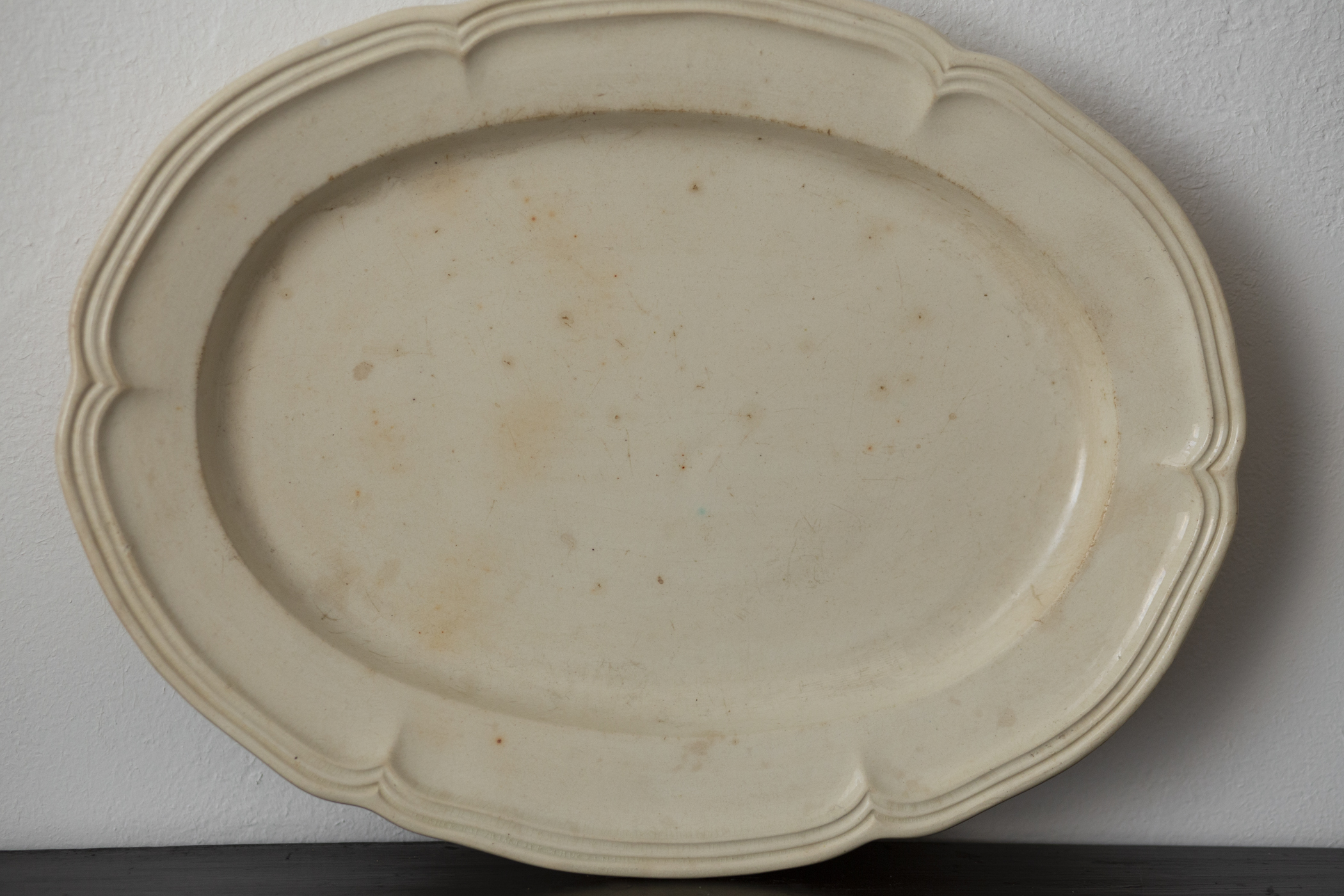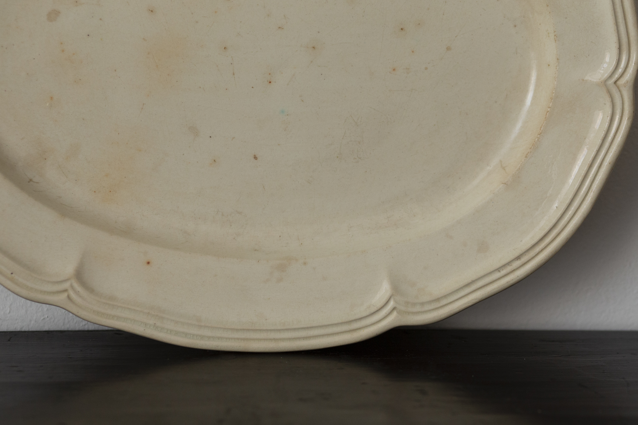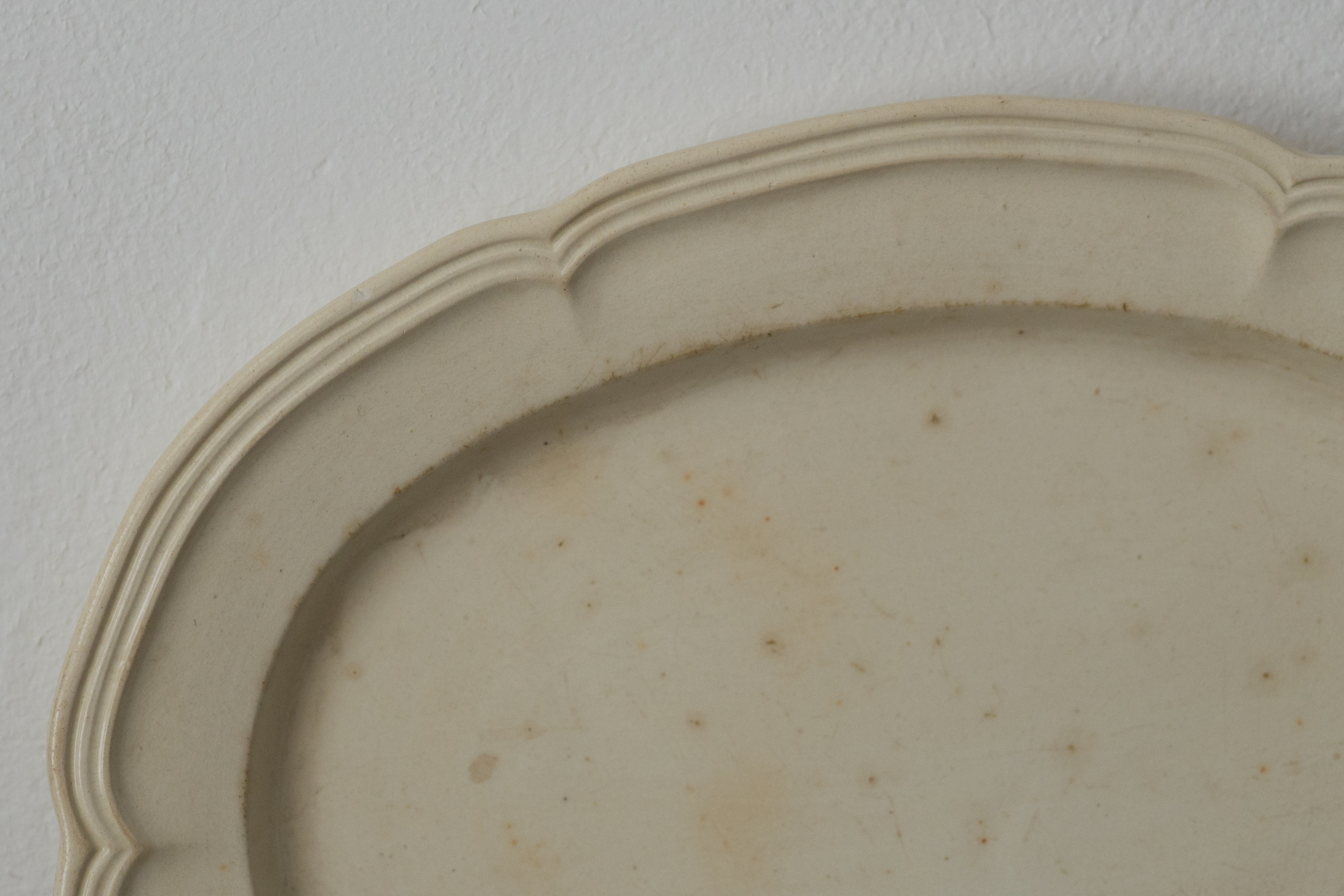 柔らかで肌理の細かい象牙の胎にゆららかなガラス釉。マチエールに惹かれます。フランス、もといロレーヌ的装飾性は華美には寄らず、生活のなかで使い込まれた時間の生んだ古色のニュアンスも美しいです。素朴さを湛えた穏当なノーブルから、時代の凪を感じていただけるでしょうか。