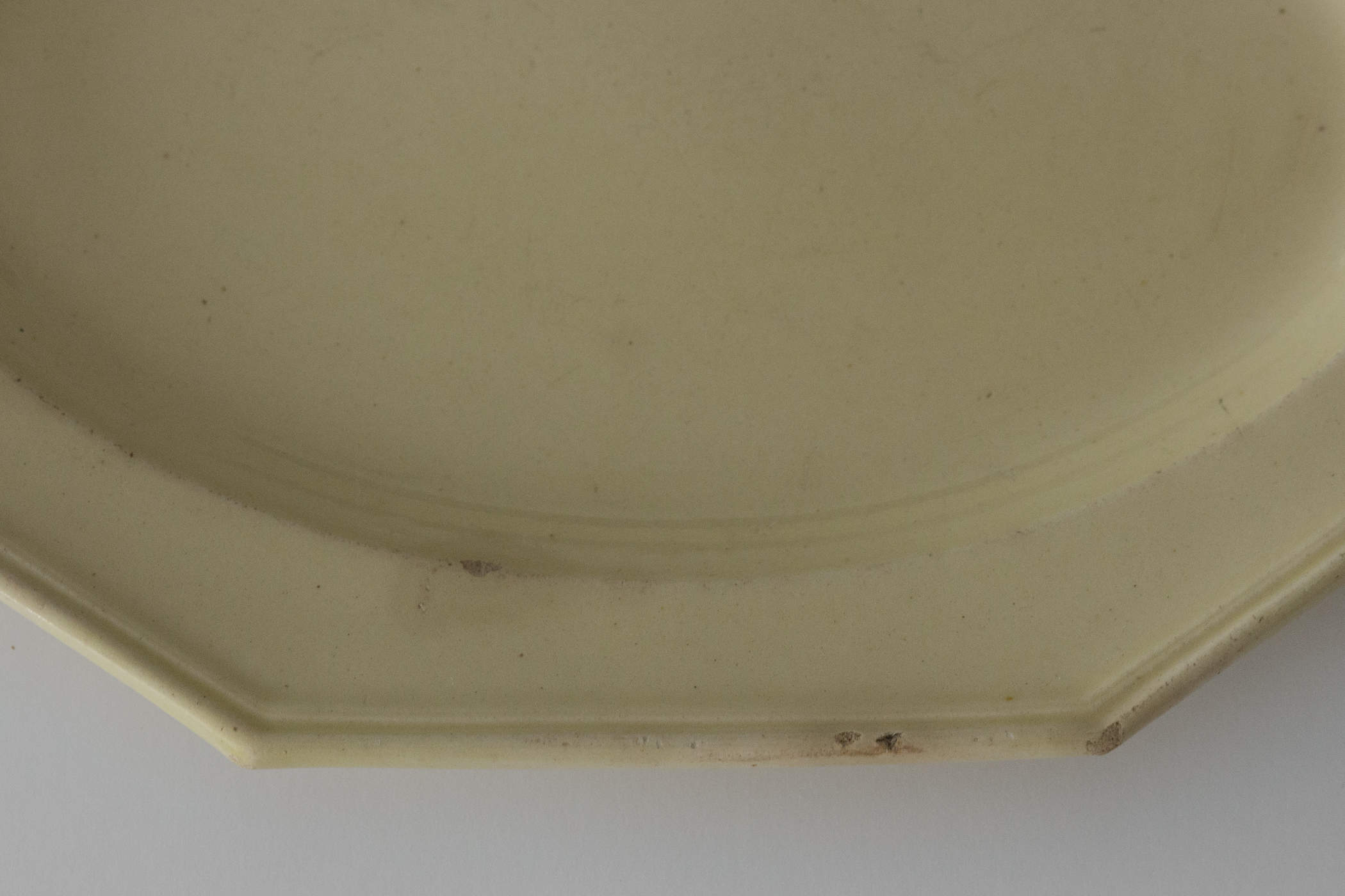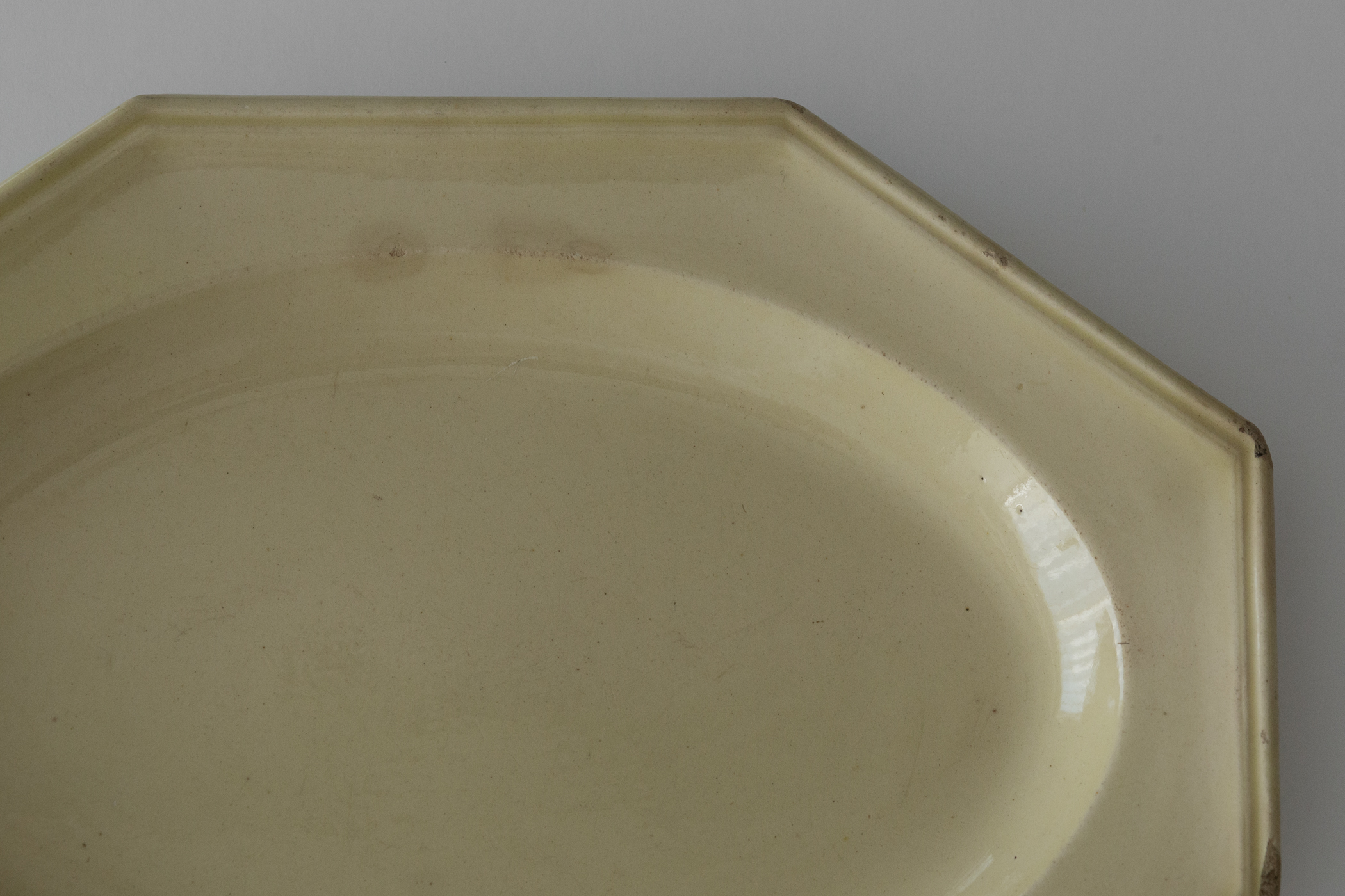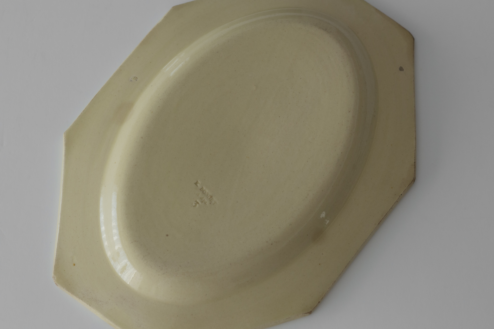 絢爛によらないモダンな気配とやわらかな彩度は、現代の感覚でも心地よく琴線に触れてきます。19世紀、アプト焼の黄釉オクトゴナル皿。小さめのデセールサイズです。