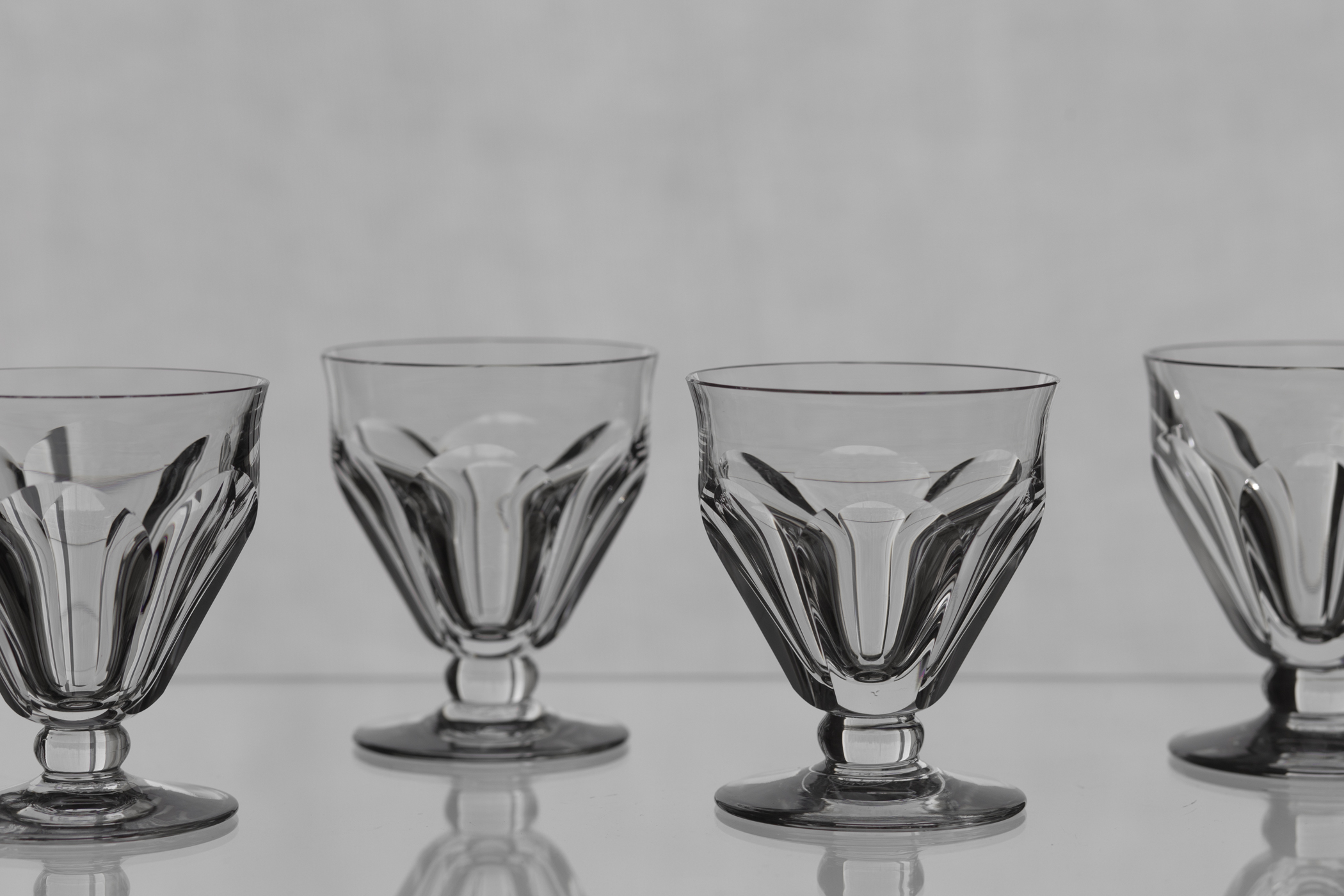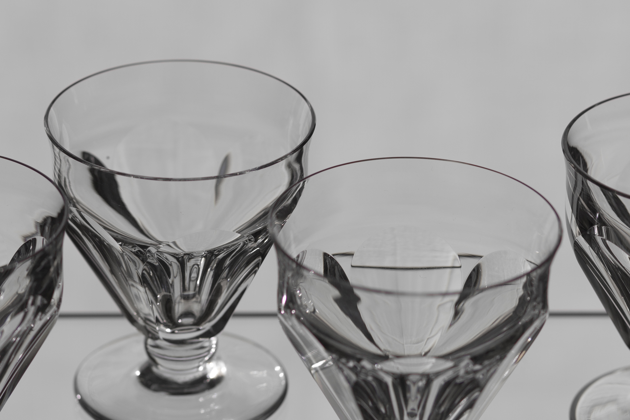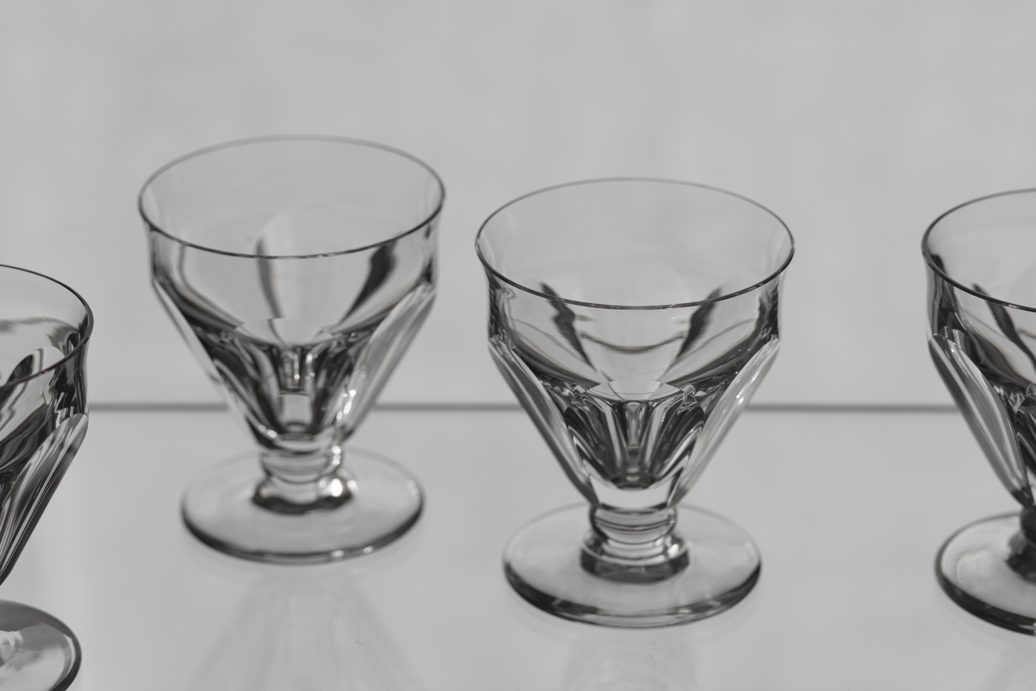 コンサバティブでありがらも非俗には陥らず、繊細で端正なエレガンス。196070年代初期頃、サンルイ。クリスタルのワイングラス。
