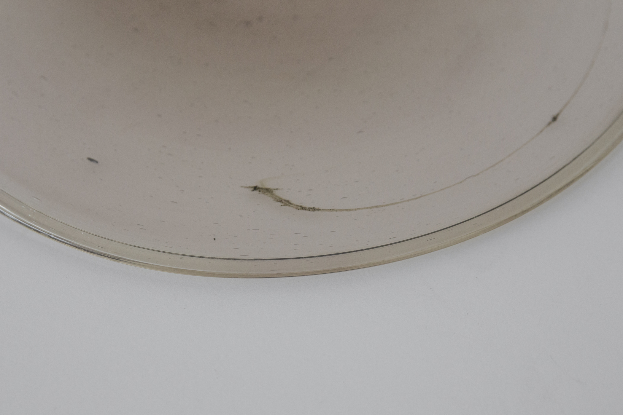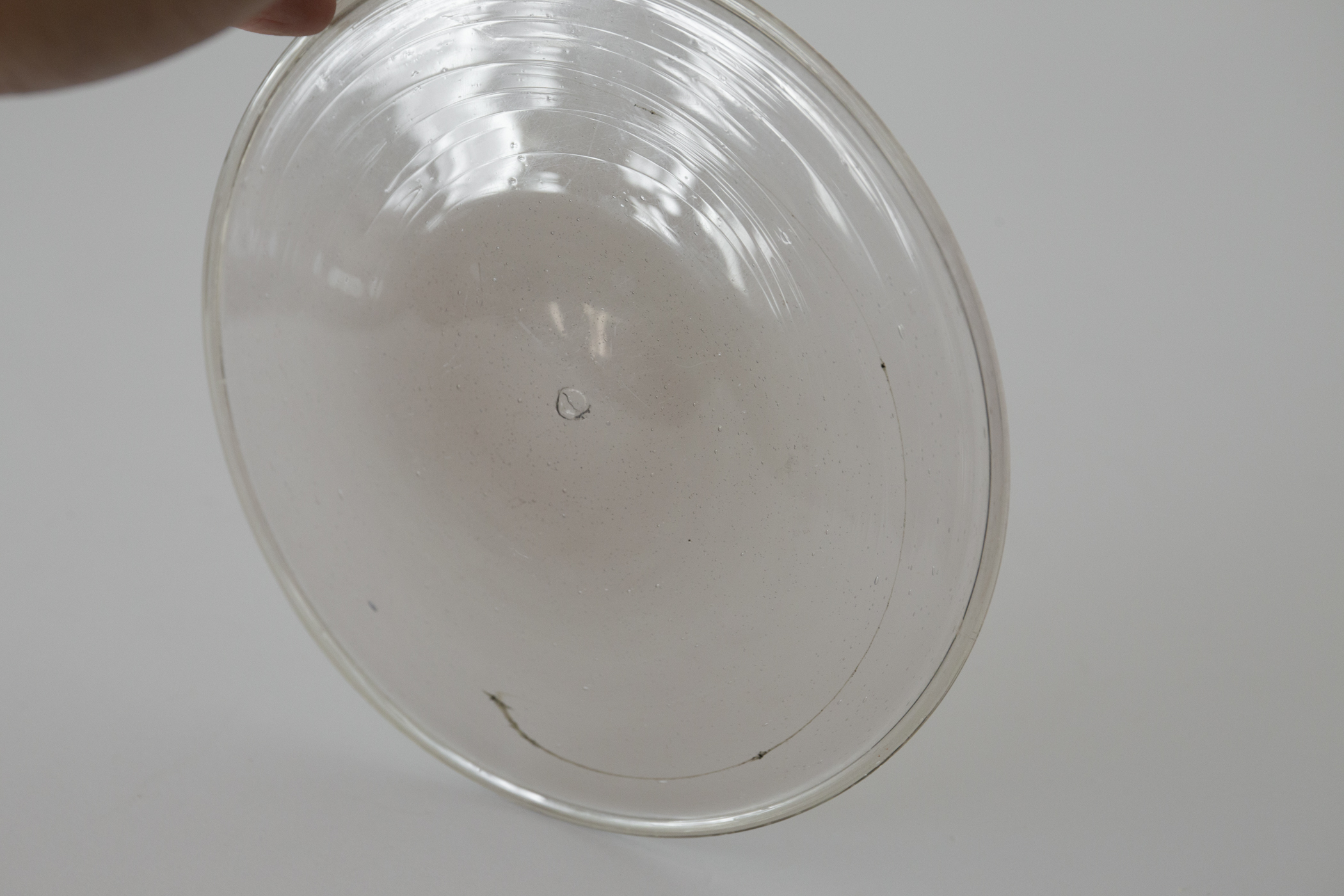 今回手にしたものは、シダ灰を用いたカリ系ガラスの流れを汲んだ作りと考えられ、18世紀頃、ロレーヌ地方周辺産という可能性が高そうです。パリ広域圏の建物で実用され、解体の難を逃れて今日まで伝わりました。