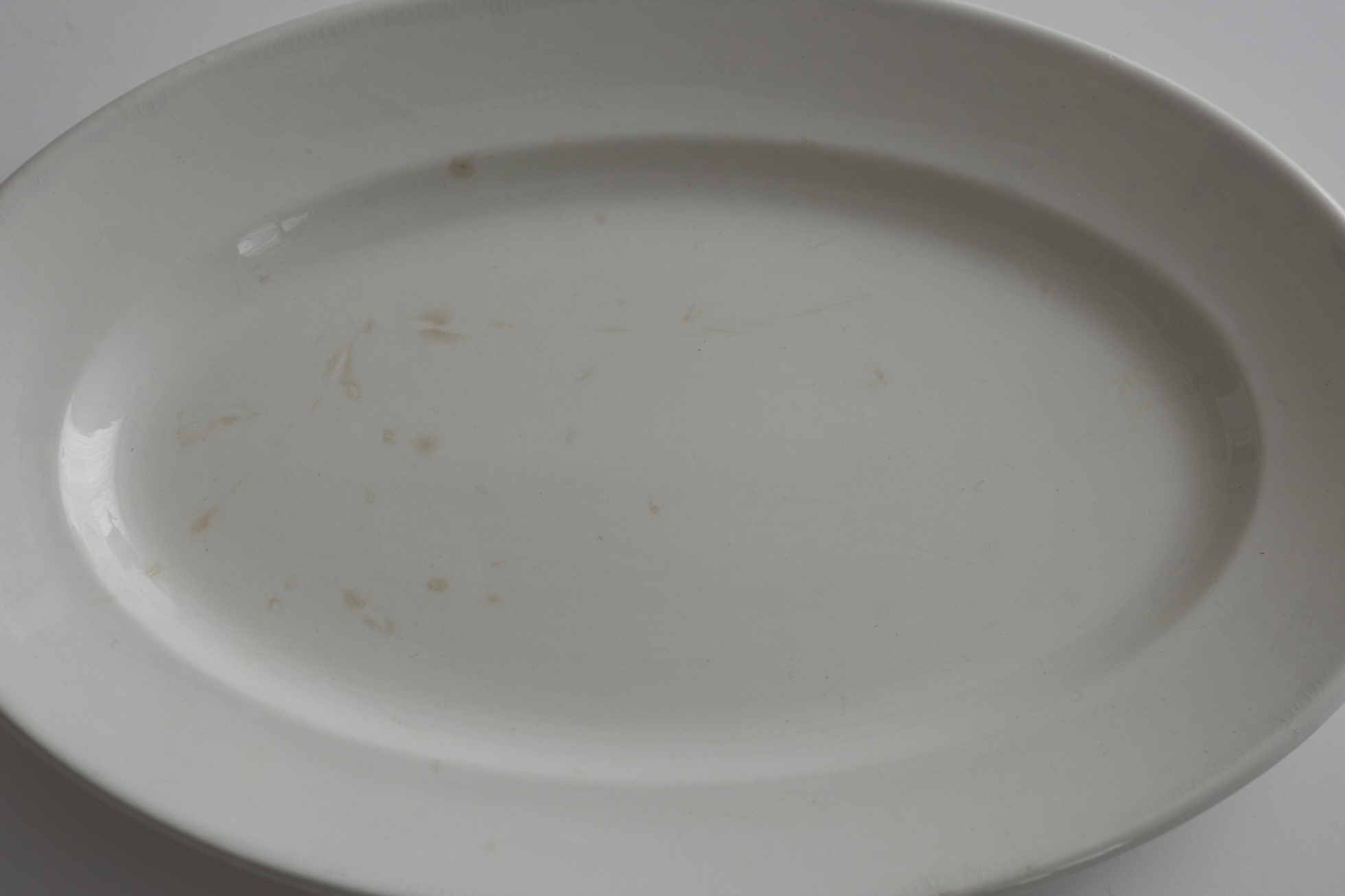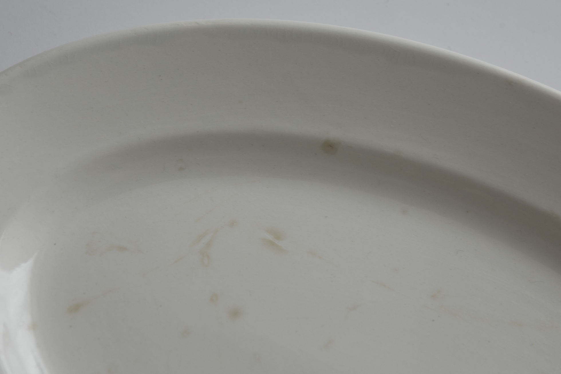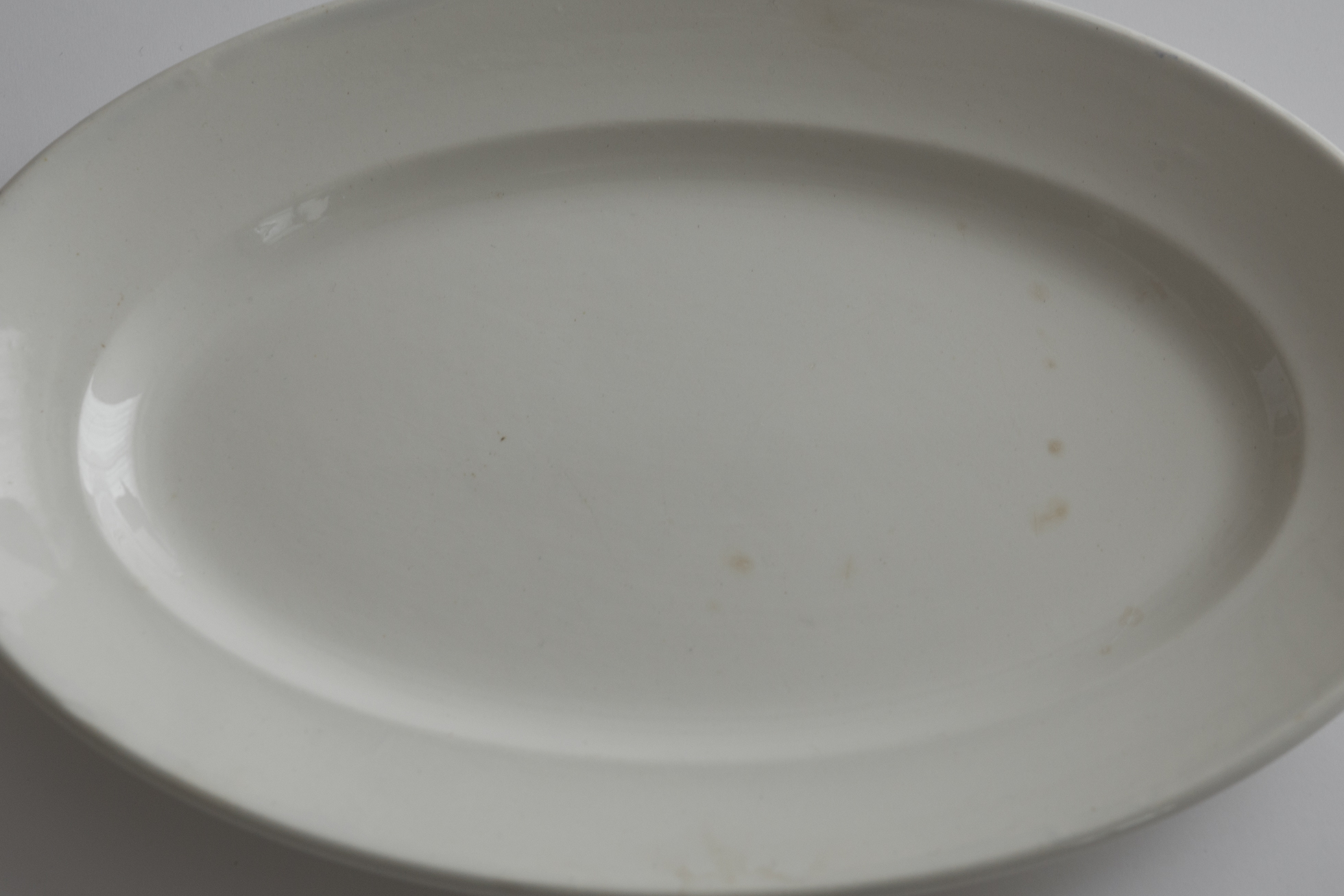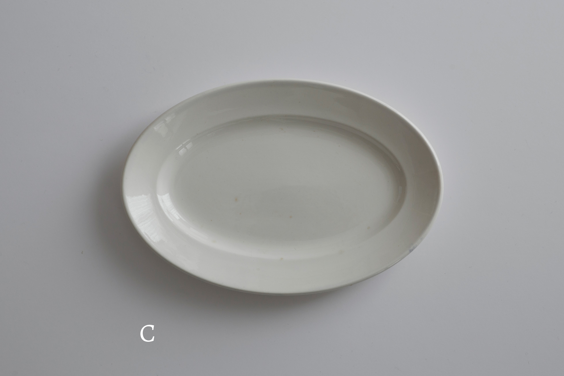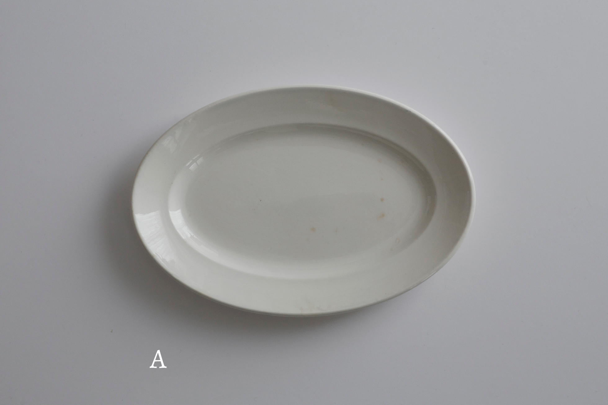 決して珍しい作りではありませんが、このくらい小ぶりなオーバル皿にまとめて出会える機会は、実はなかなかありません。古い時代のフランスでは、オーバル皿が銘々皿ではなく盛り皿であり、揃いで多く作られる性格の器ではなかったためですね。いつ見つけてもやはり嬉しくなります。