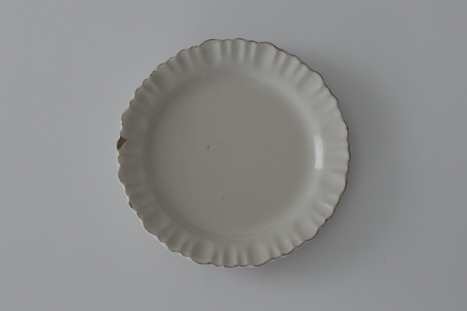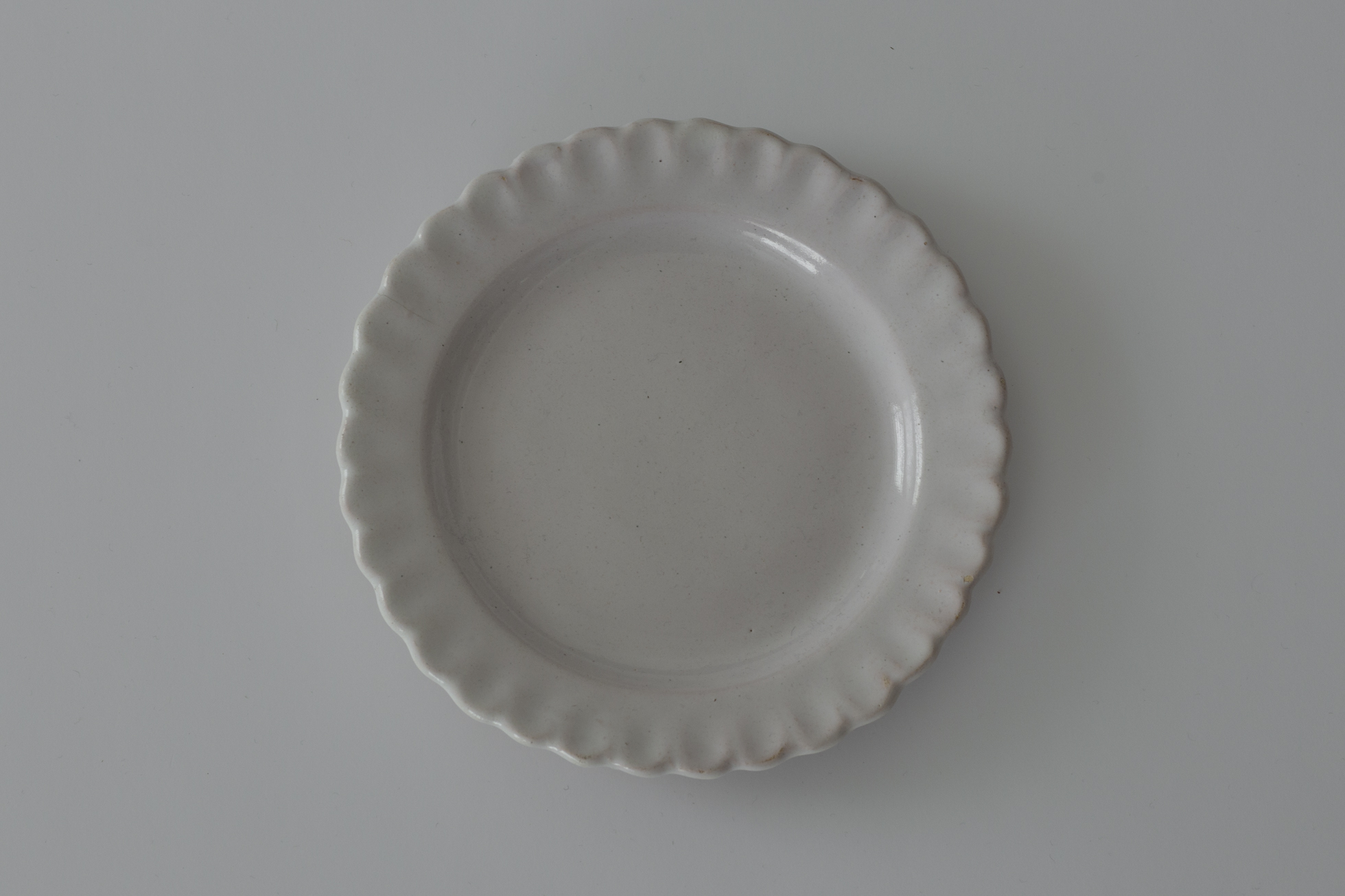 花弁のようにかたどられたリムの愛らしさと、型作りならではの端正さ。19世紀初期頃のムスティエ、あるいはヴァラージュ焼きのリム皿。