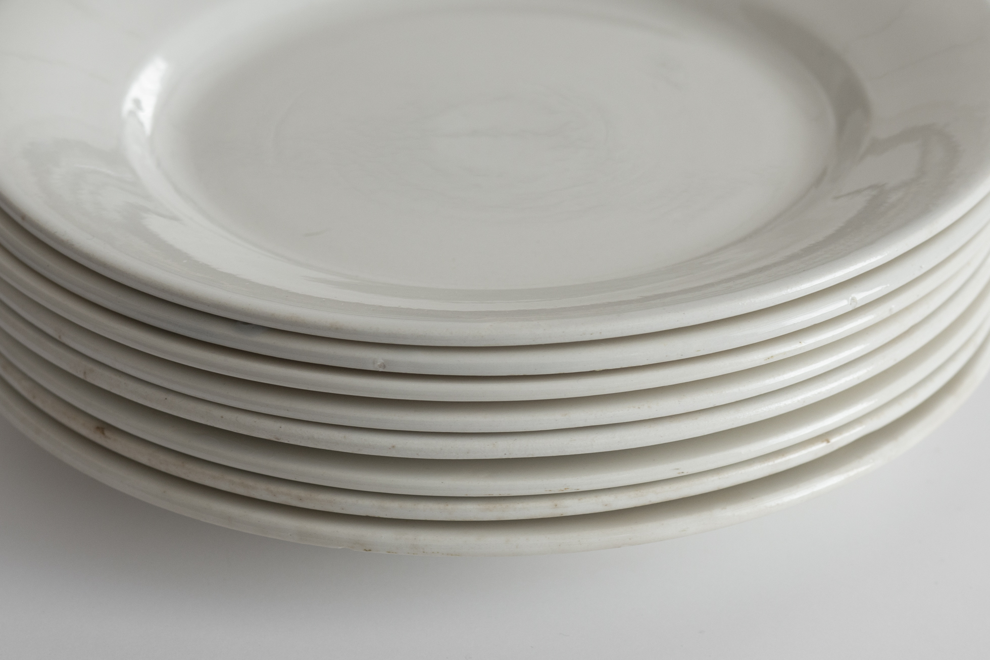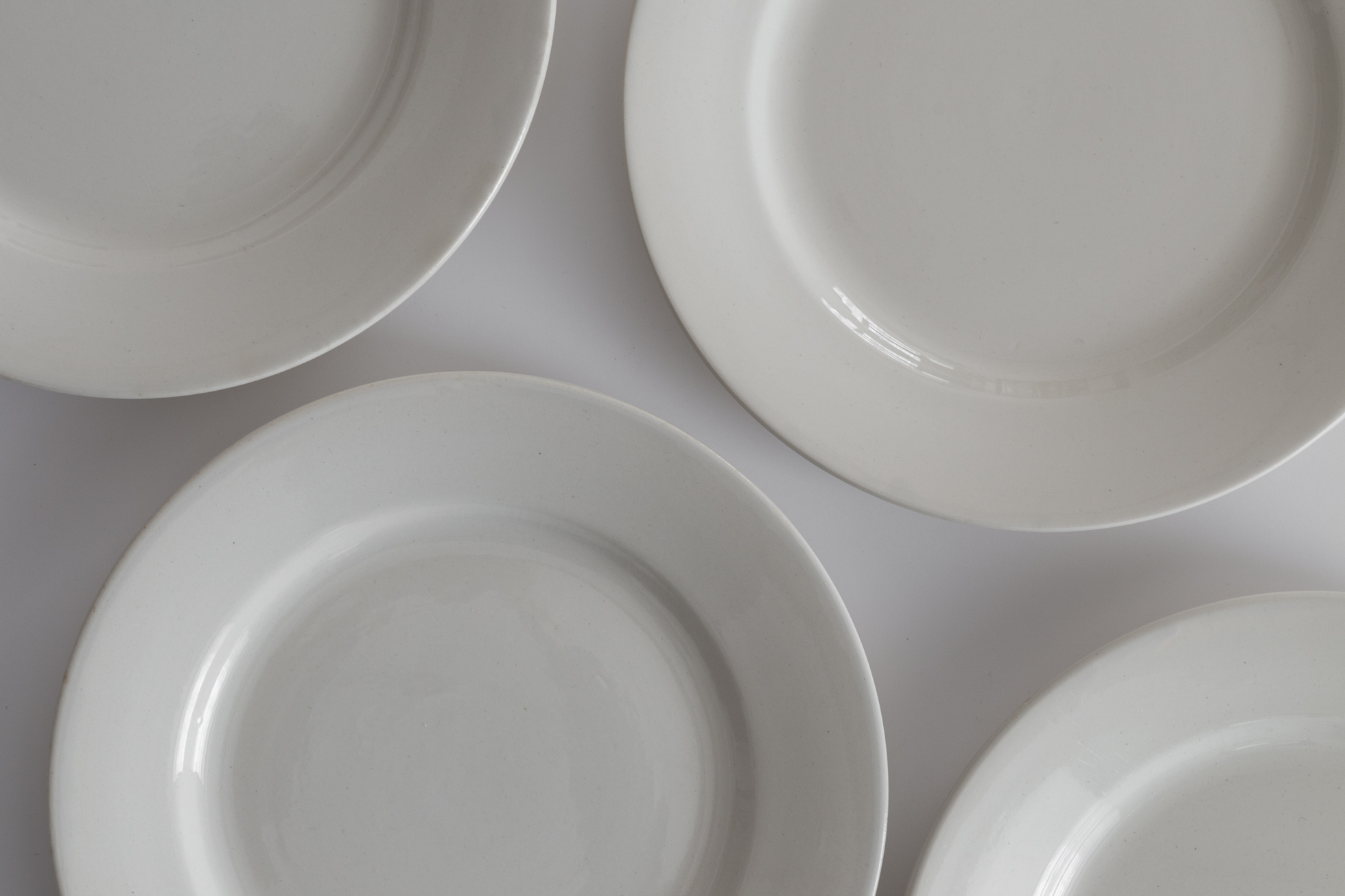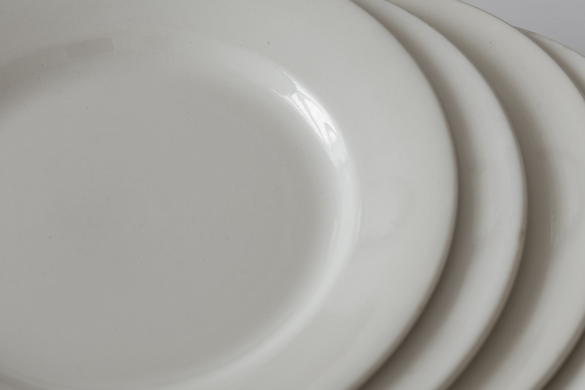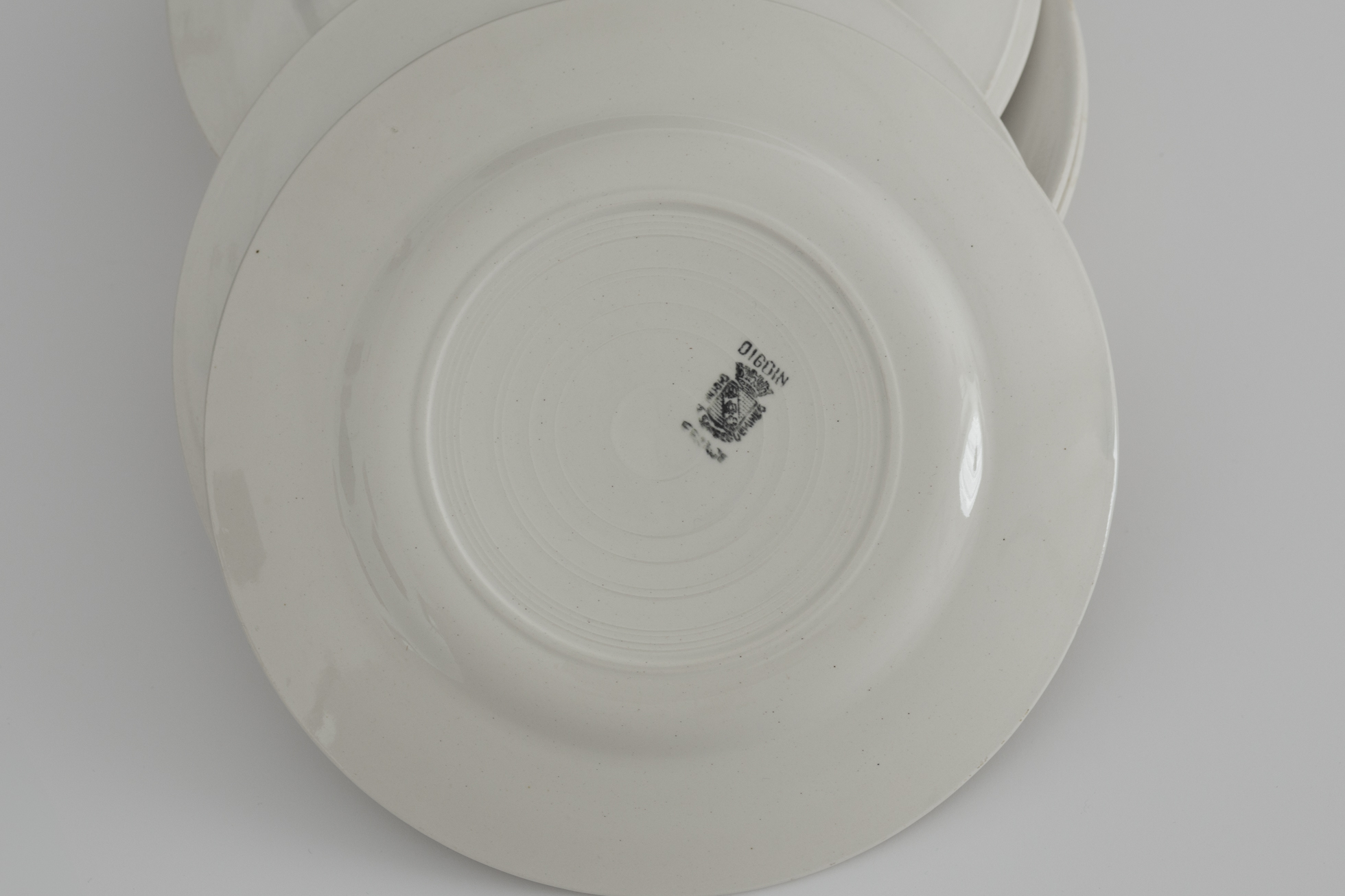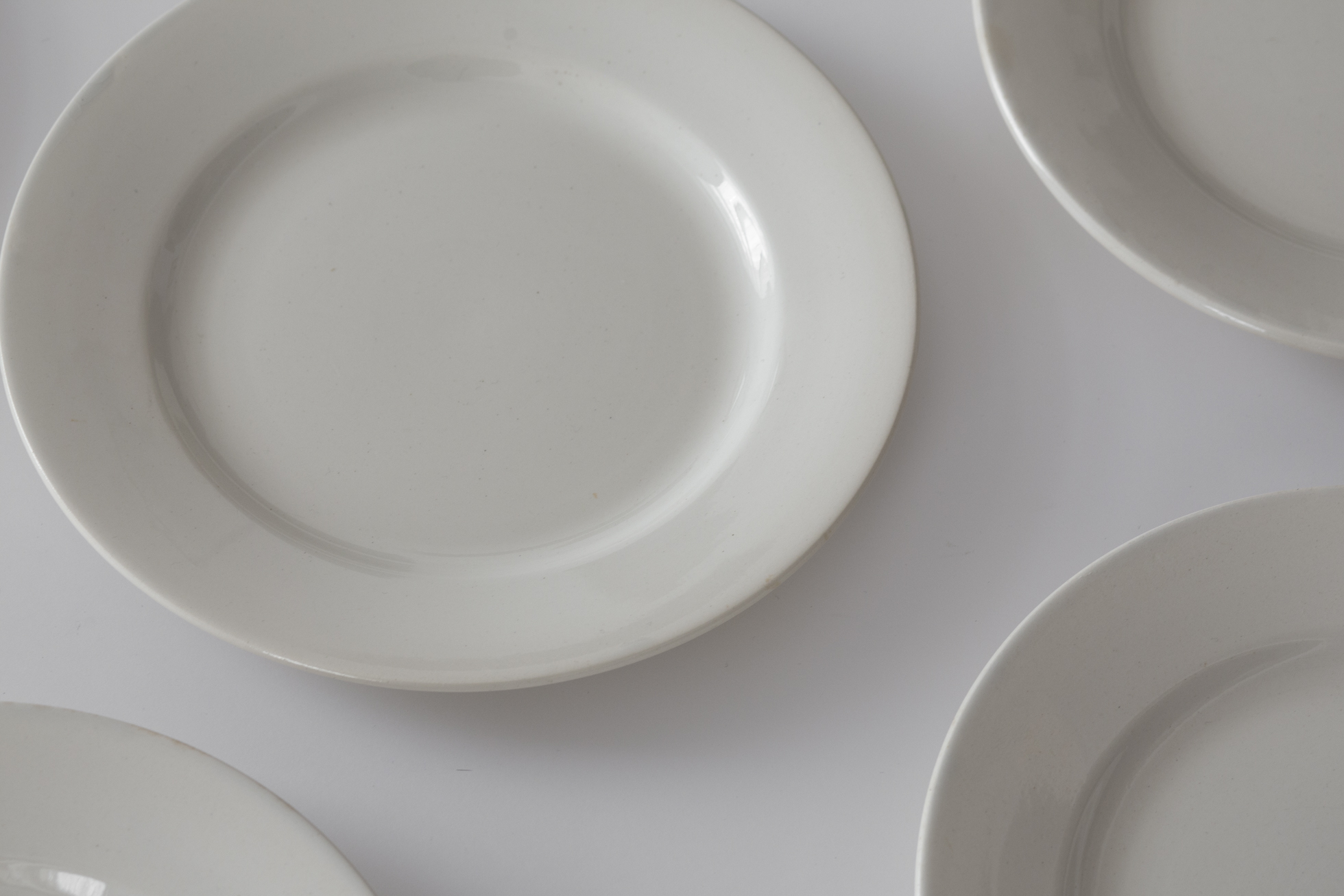 厚めの陶胎に白無地の実用的な佇まい。カフェ、レストランといった場所を想定した、当時の食堂皿です。1920〜50年代頃、ディゴワン・サルグミンヌ。