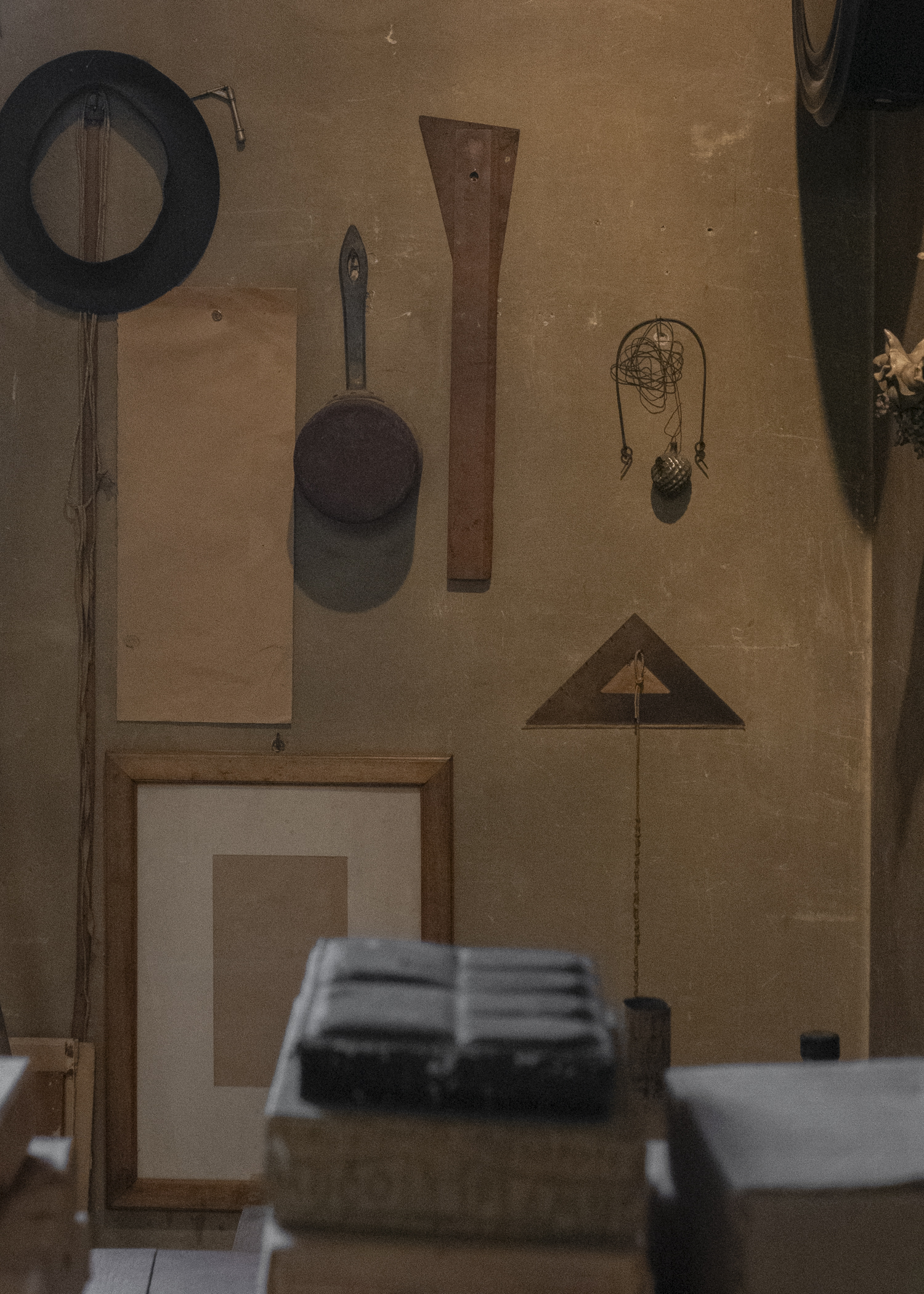 社会的な価値基準では取るに足らないとされる(きっと自分には蚤の市で見つけ出せないような)物々は、実際は意味を纏っていないことにはっきり意識を向けた作為ある選択の集積のはずですし、それにアトリエが当時のままの状態かと言われれば、ボローニャ市によって現代的で清潔な改装が為されたことは知られているところで、それ以前であってこそという意見もあるのだと思います。けれど実際に訪れてみて、あれこれ抱えていた事前知識はすうっと洗い流され、彼のパーソナリティただそれだけが心深くに入りこんできました。