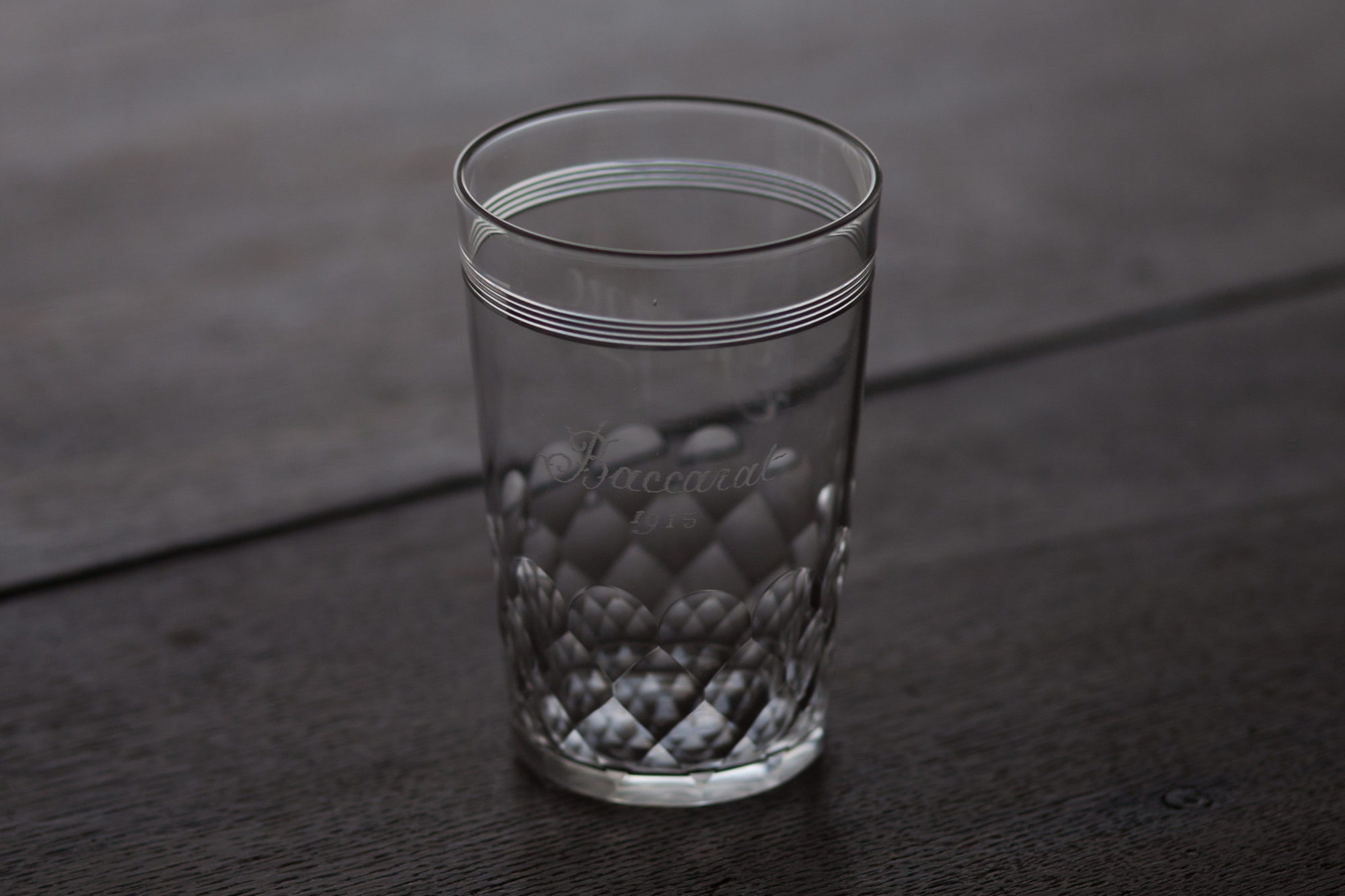 洋の設えにはもちろん、和の設えにも溶け込むニュートラルな佇まい。冷酒のお供にいかがでしょうか。フランスの伝統的なフラットリブカットをデザインソースにして生み出された、通称「シカゴ」の名でも知られる、アンティークバカラの酒用グラス。