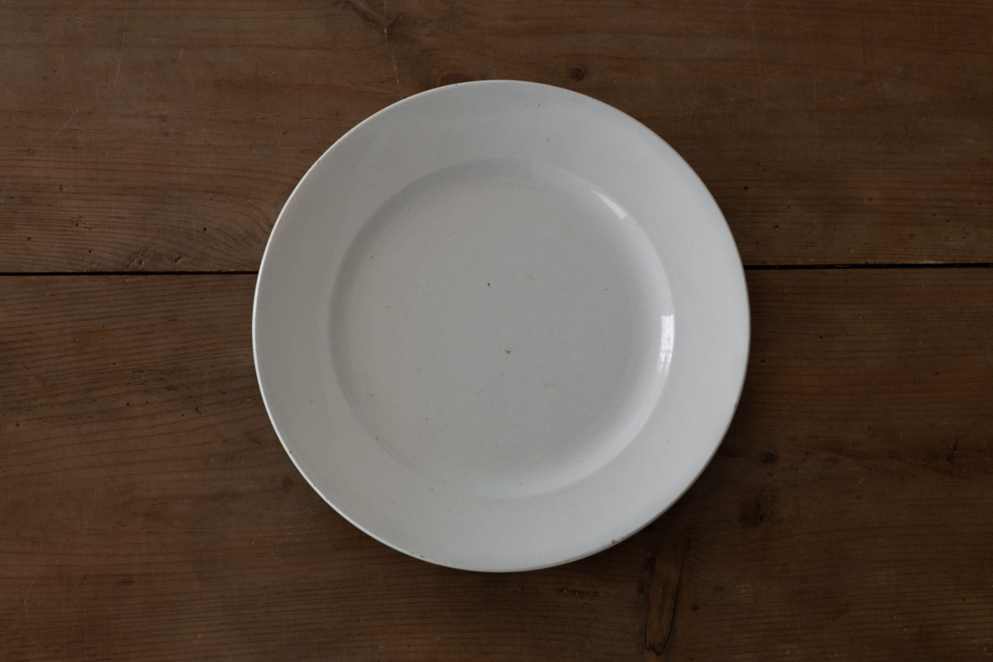 時代固有の手工業品として通底した魅力がある、19世紀、半陶半磁器の白釉リム皿ですが、ちょっと珍しい1枚を、積み重ねて埋もれてしまわないように敢えて取り出しフォーカスしてみます。1855〜75年頃、アルボラス窯より。