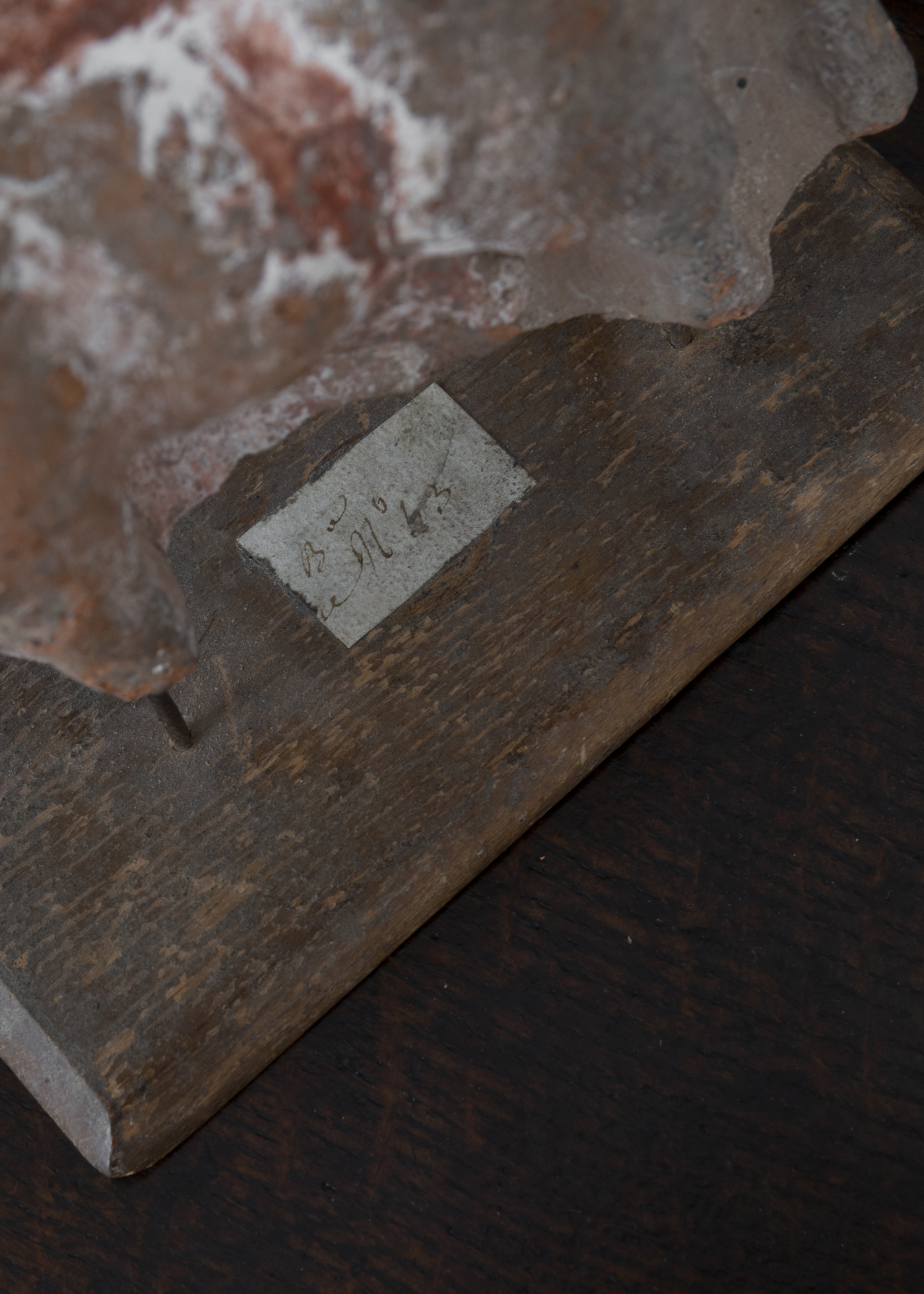 材と造形の美しさは何よりですし、惹かれたのは古作の素朴な台座が残っていたことにもあります。教師や学識ある聖職者、あるいは純粋な好事家が古代の遺物を愛でること自体は、近世初期頃からはすでにあったとされます。台座はそうした文脈のなかで、おそらく19世紀末〜20世紀初期頃に仕立てられたものです。